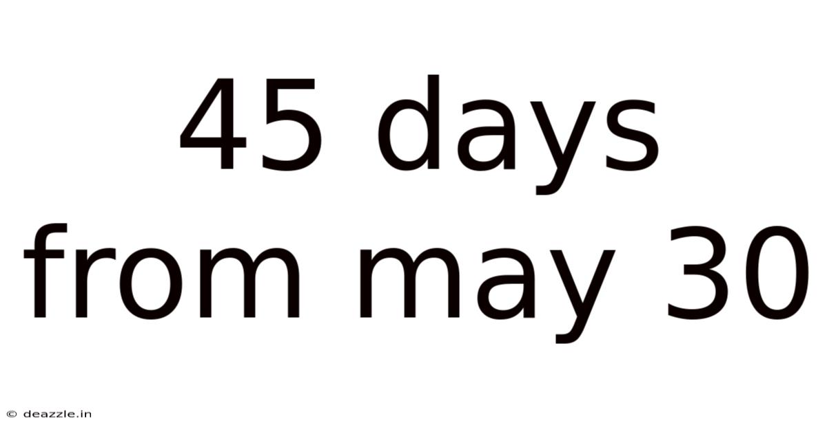 The most straightforward way to determine the date 45 days after May 30th is to break it down into manageable chunks. May has 31 days. So, from May 30th, we have one day remaining in May (May 31st). This leaves us with 44 days to account for Small thing, real impact. Which is the point..